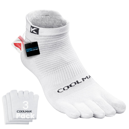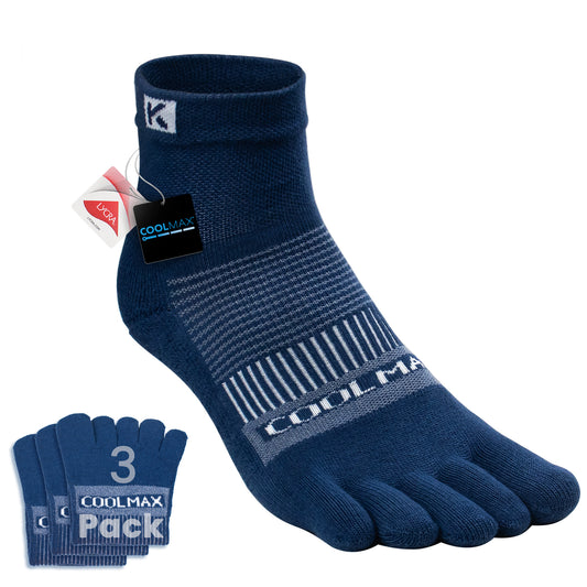 KWUKOTY Cushioned Compression Ankle Running Toe Socks COOLMAX, 3 Pairs Men's 4-13, Women's 5-14