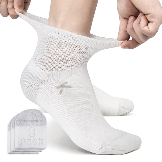 KwuKoTy Diabetic Socks Ankle Cushioned Sole Combed Cotton, Daily Wear & Sports, 3-Pack Men's 6-12 Women's 7-13